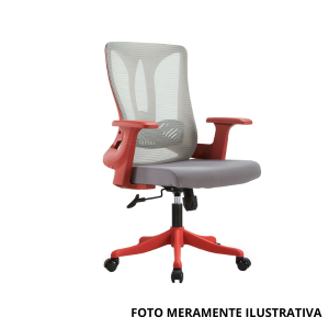 CADEIRA GIRATÓRIA DIRETOR TELADA BRAÇO FIXO (768) - CINZA COM VERMELHO - BLM - NOVA
